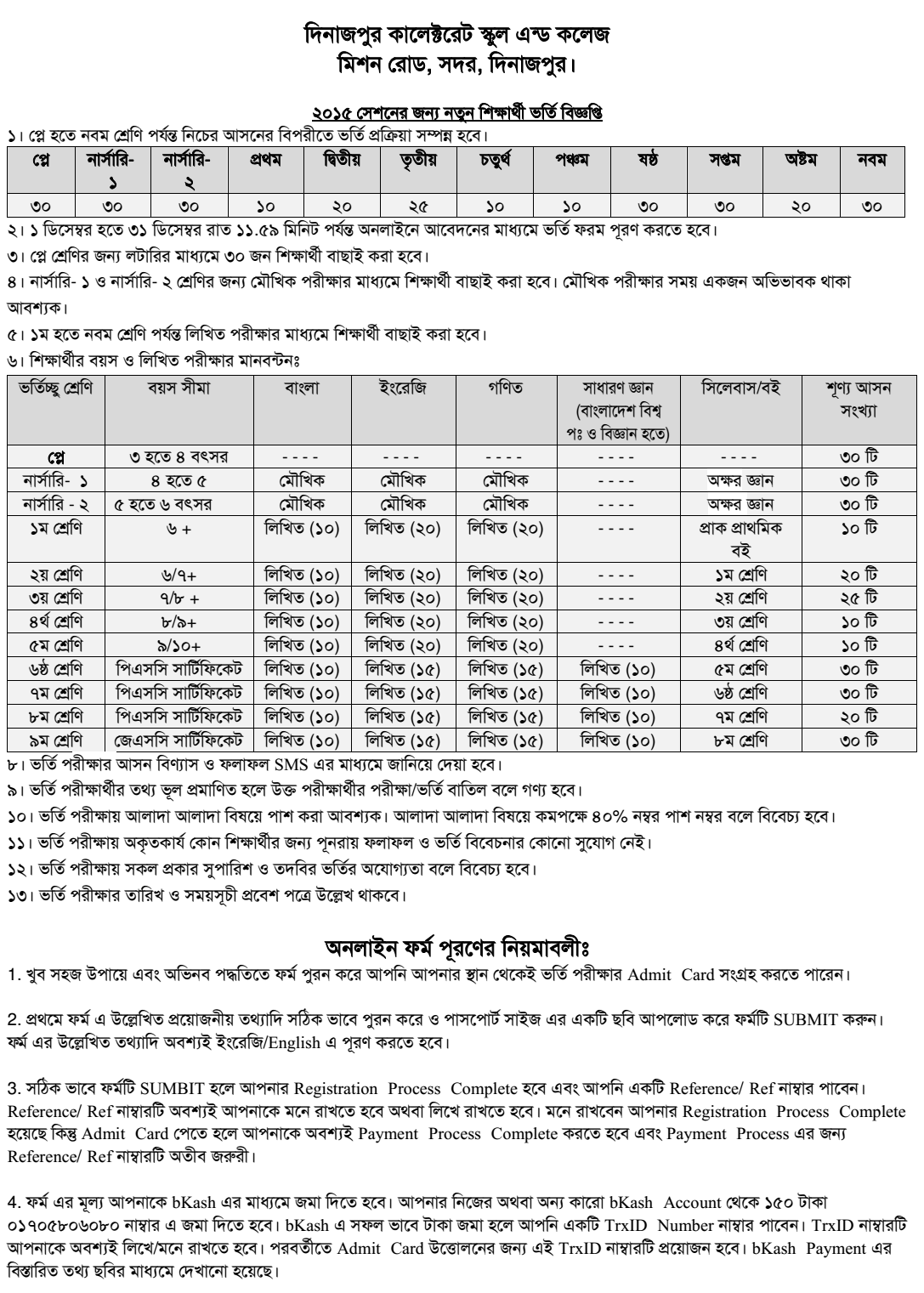 দিনাজপুর কালেক্টরেট স্কুল ও কলেজ এর ভর্তি বিজ্ঞপ্তি ২০১৫ এর জন্য নিচের ফাইলটি ডাউনলোড করুন